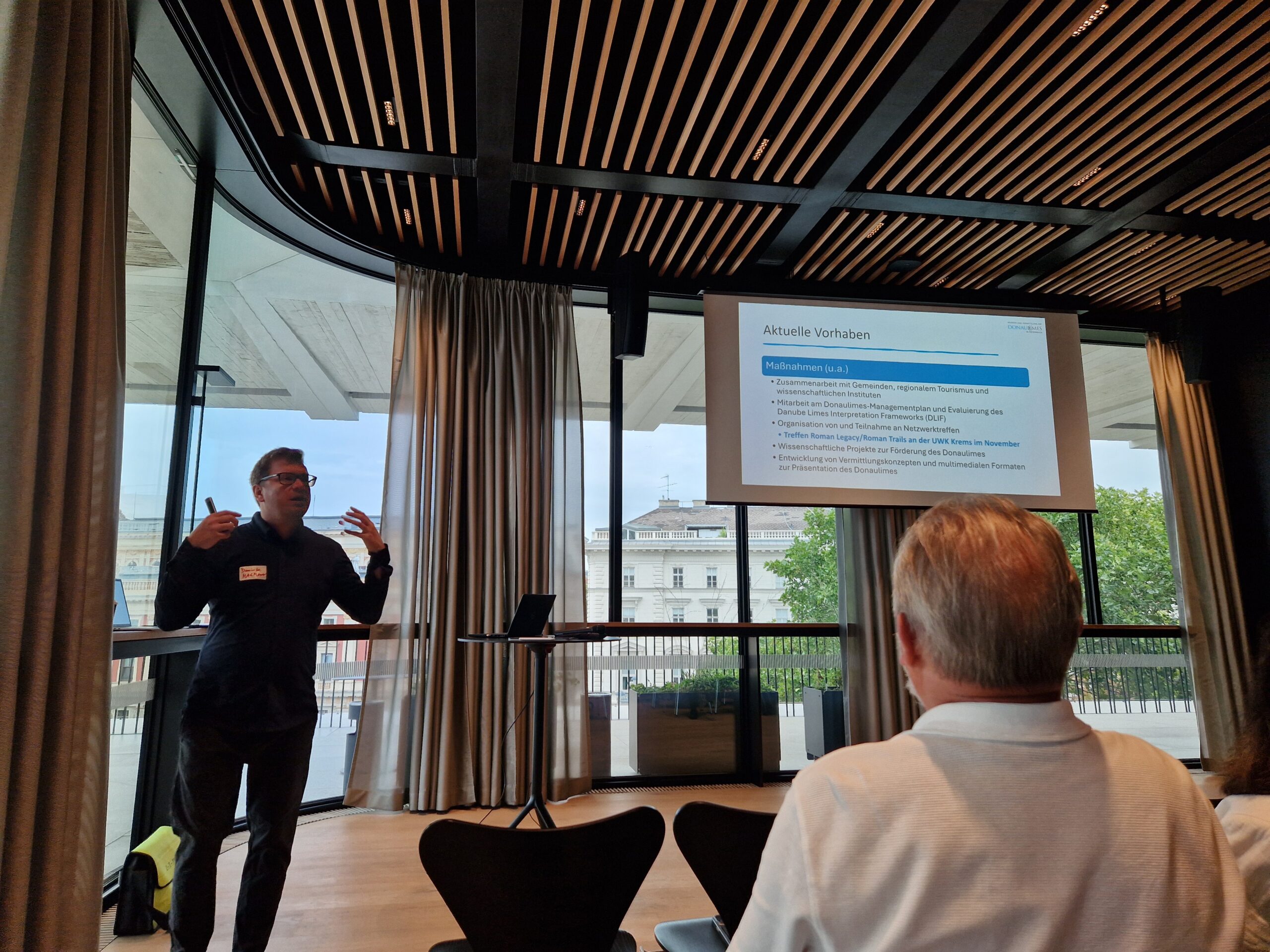 Nach einer Präsentation zum aktuellen Status quo des Vereines durch dessen Präsidentin Michaela Kronberger und den Schriftführer Dominik Hagmann konnte der General Manager der UNESCO-Welterbestätte Donaulimes, Christian Hemmers, die wichtigesten Agenden des Forum Donaulimes der Zuhörerschaft näherbringen.